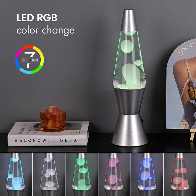 15インチRGB LED溶岩ランプは底部で7色に変化します。色は溶岩で白くなっています。