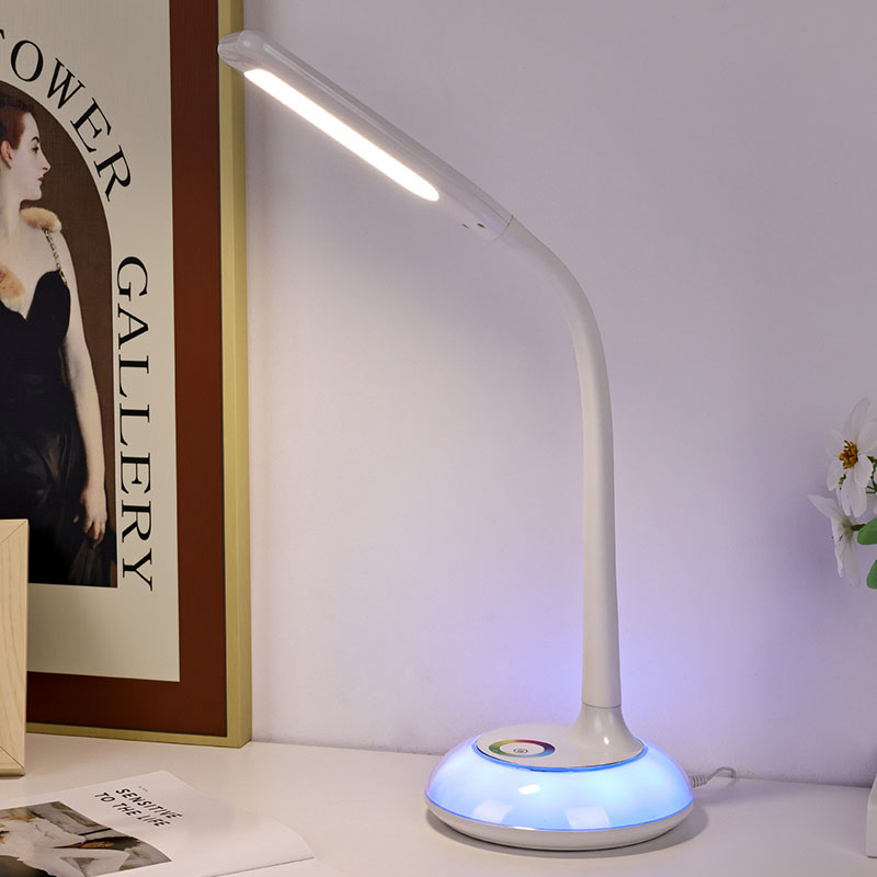 RGB ベース付き CCT LED デスクランプは円形ベース、5000K データの白色光を備えています。
