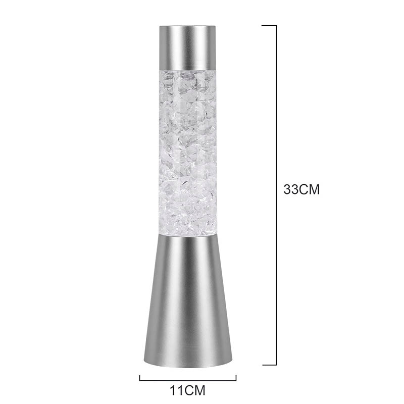 氷のような形をした色が変わる液体グリッターナイトライトは、金属ベースとカラフルなクリスタルのようなピースで満たされた透明な上部セクションを備えた洗練されたモダンなデザインが特徴です。ランプのベースは安定していてエレガントなデザインで、どんな家の装飾スタイルにもマッチします。透明な部分にはカラフルなピースが入っており、ゆっくりと動き、魅惑的な視覚効果を生み出します。ランプのカラーバリエーションはレッド、ブルー、グリーンの3色からお選びいただけますので、インテリアに合わせて最適な色合いをお選びいただけます。
