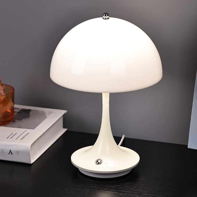 キノコシェード付きのかわいいLEDホームランプには、金属製のベースと金属製のランプポスト、プラスチック製のランプシェードが付いています。ランプシェードの表面はワックスがけされており、滑らかで、手触りが非常に良く、キノコに似ています。