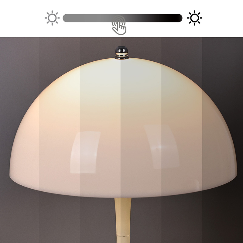 ライトのスイッチは上部にある小さなアイロンビーズで、タッチ操作で3段階の暖かい光を調整できます。ライトリフトと一体化したデザインで調和のとれた雰囲気を演出します。