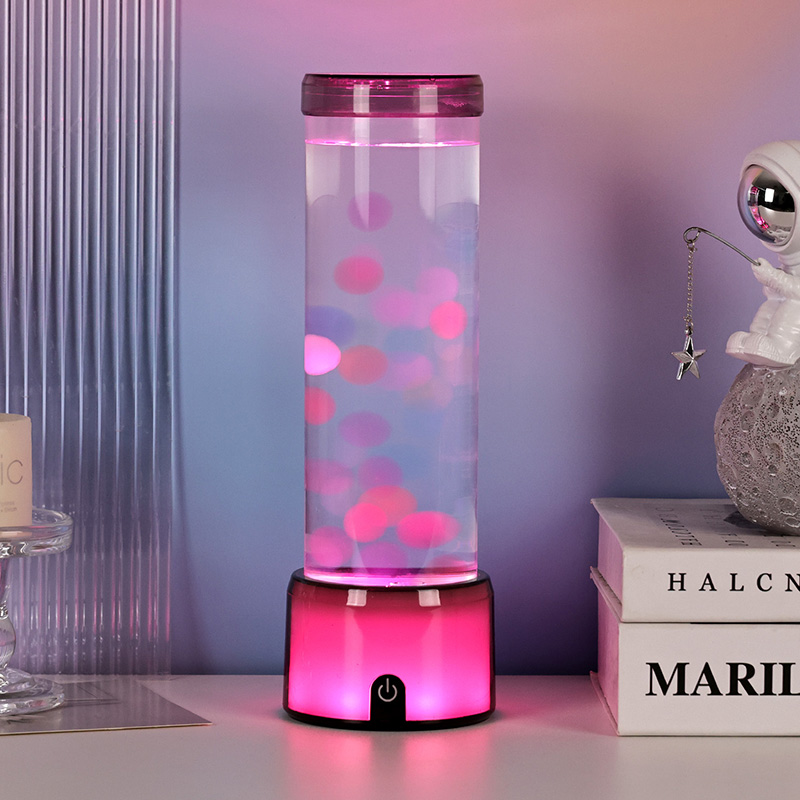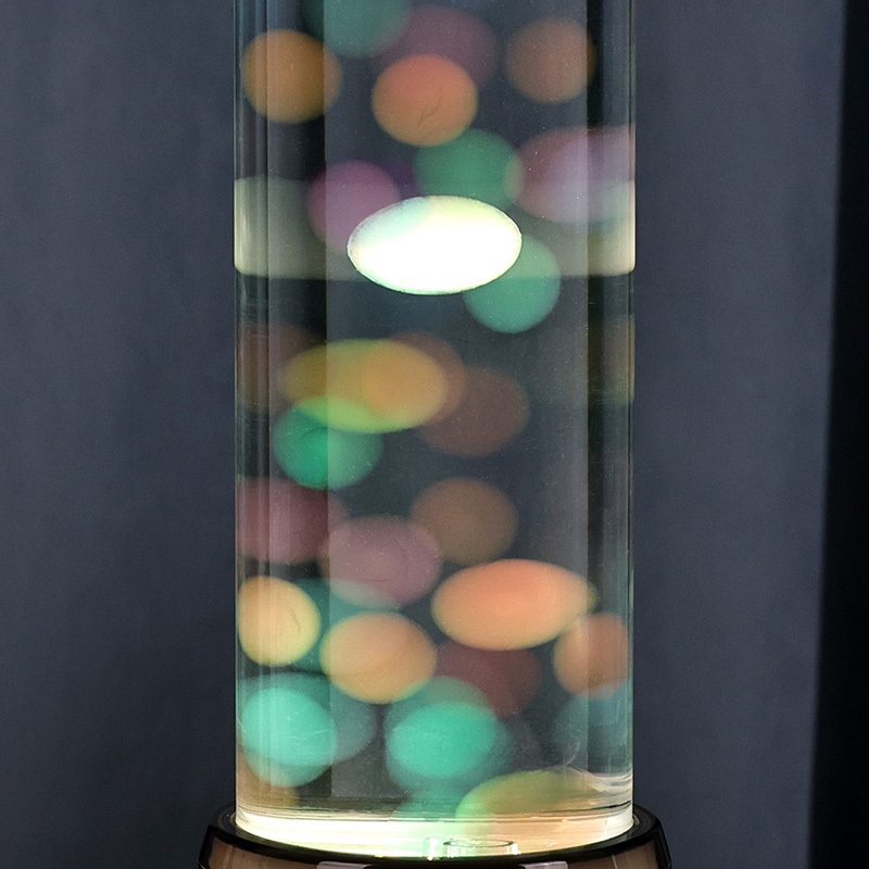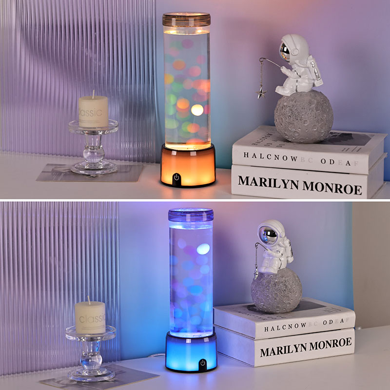 ランプの背の高いエレガントなシリンダー形状は、さまざまなインテリア スタイルを引き立てるモダンでミニマリストな外観を与えます。透明なボディにより、浮遊するクラゲやきらめく光の反射など、内部の要素を完全に見ることができます。内部の液体は水の流れをシミュレートするために特別に配合されており、浮遊運動のリアルさを高めます。 LED の色が変化すると、クラゲが生命力を持って脈動しているように見え、シーンに奥行きと動きを加えます。