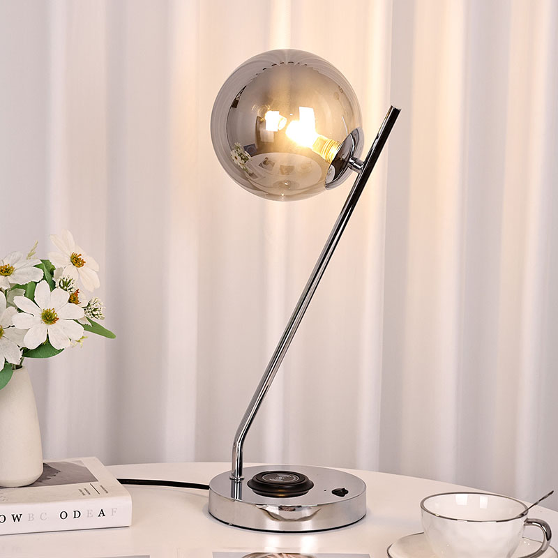 ワイヤレス充電器付きダークガラスボールデスクランプは金属ベースのアンドガラスで作られています。ガラスカバーはランプに透明で純粋な質感を与えるだけでなく、光を効果的に拡散し、光をより柔らかく均一にします。金属ベースは細かく研磨および処理されており、表面は滑らかで繊細で、手触りが快適で、高貴でエレガントな雰囲気を醸し出しています。寝室、リビングルーム、書斎のどこに置いても、このデスクランプは周囲の環境に完璧に溶け込み、モダンで芸術的な雰囲気を加えます。