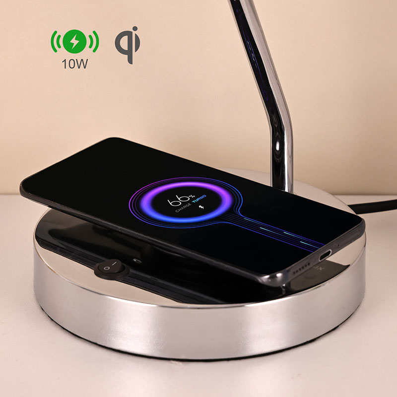 ワイヤレス充電器付きデスクランプには、ベースにオン/オフのコントロールボタンがあります