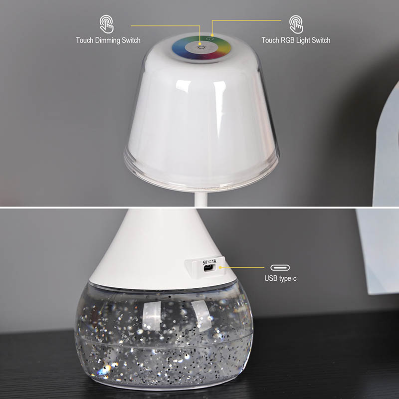 RGBグリッターベースを備えた優雅さと革新LEDデスクランプ