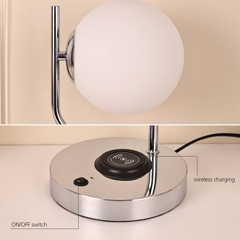 ワイヤレス充電器付きガラスシェードデスクランプには、金属製ワイヤレス携帯電話充電ベースも装備されています。ワイヤレス充電対応の携帯電話をベースにそっと置くだけで、面倒な充電を必要とせずに急速充電できます。
