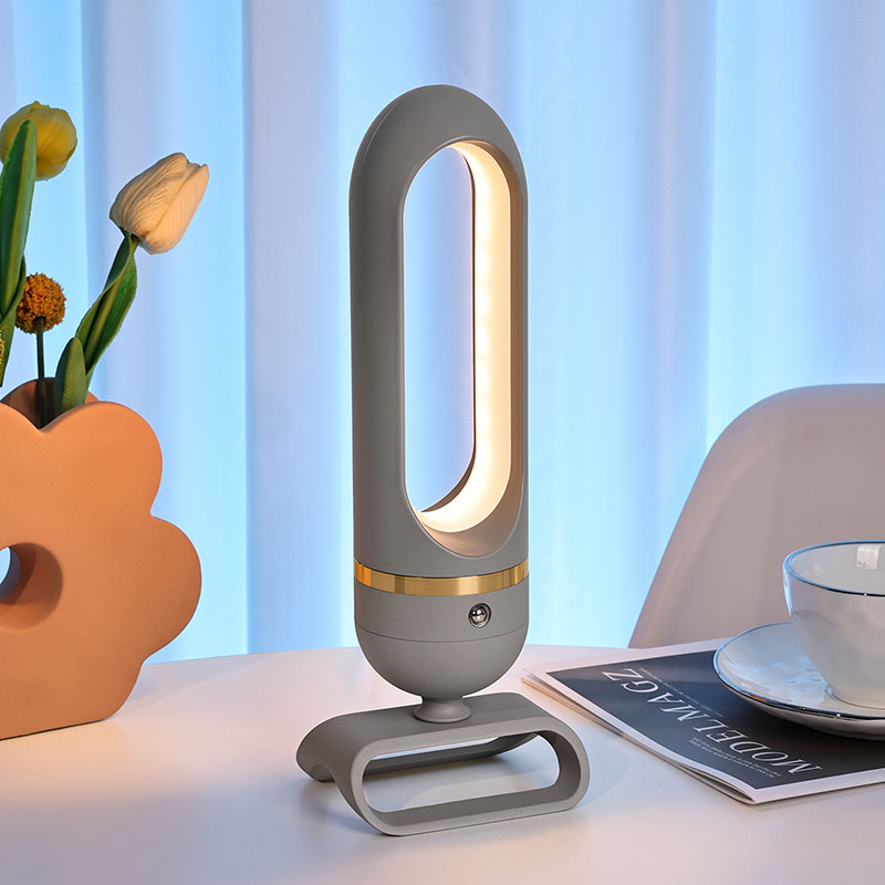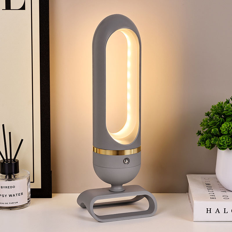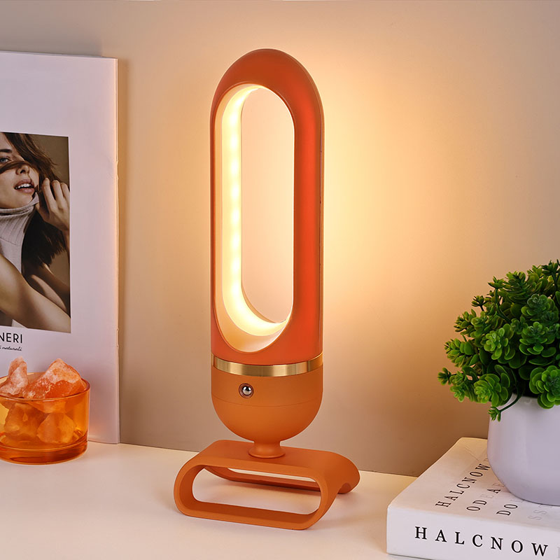 針のようなデザインと真ん中の穴が温かみのある光を放つ、プラスチック素材で作られたかわいいミニ型の小さな電気スタンドです。 LED全体が発光し、外側を様々な色に塗装して目を保護することができます。ボトムはヘッドに合わせて中空のトラックのようにデザインされています。全体的なデザインは軽量でコンパクトで、高品質のミニ LED デスクランプの外観は非常に美しいです。高品質ミニLEDデスクランプの中央に光制御ボタンが挿入されており、暖色、自然色、白の3種類の光を調整できます。長安ボタンはさまざまなライトの強度を調整でき、非常に実用的で、さまざまな環境で使用できます。また、1800mAの3.7V充電池が真ん中に挿入されており、繰り返し充電できます。また、背面にUSB type C充電ポートがあり、電圧は5Vで非常に安全です。小さくて持ち運びに便利なサイズなので、お子様が本を読んだり、室内で飾ったりするのに非常に適しており、またハイキングや登山などの屋外旅行に持ち運ぶのにも適しています。
