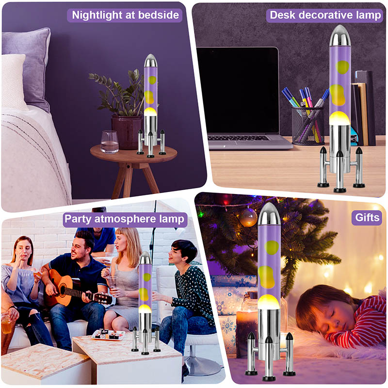 子供用のおもちゃとしても、大人用の装飾としても、このロケットの形をした紫色の水の黄色のワックスランプは、あなたの人生の明るいスポットになります。そのユニークなデザインは、その魅惑的な輝きで、ご家庭の環境に楽しさと活力を加えるだけでなく、ご家族やご友人との会話の焦点にもなります。
