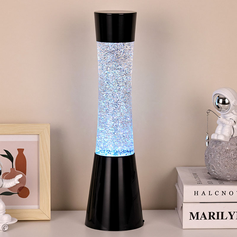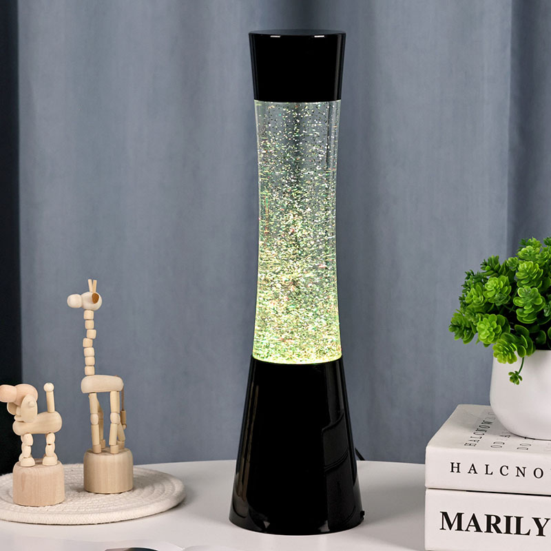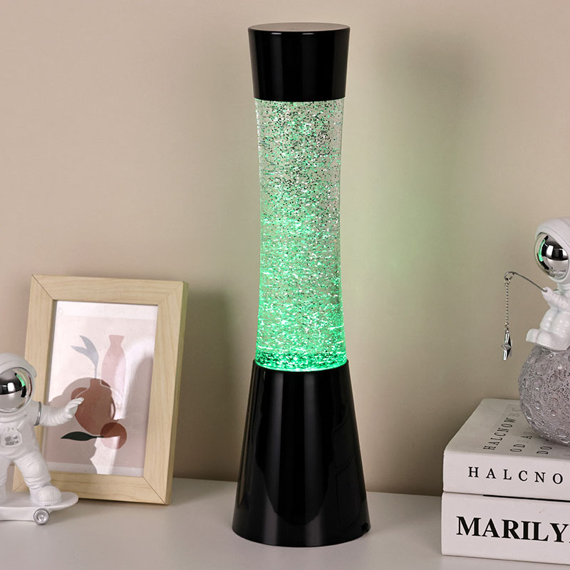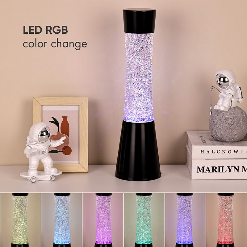 この小さなナイトライトのもう 1 つのハイライトは、内部の液体とグリッターのデザインです。液中にはラメが大量に含まれており、光が当たるとまるで夜空に無数の星が瞬いているかのようにキラキラと輝きます。液体が流れるたびにラメが不規則に飛び散り、幻想的な視覚効果を生み出します。 3AAA電池を使用したLEDグリッター溶岩ランプには、RGBカラー照明機能もあります。高度なLED技術により、照明器具は柔らかく均一な光を発し、さまざまなシーンやニーズに応じて光の色を自由に調整できます。お気に入りの色を選択したり、照明器具の色が自動的に変化してカラフルな視覚的な饗宴を作成したりできます。