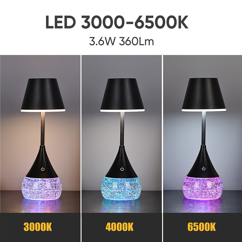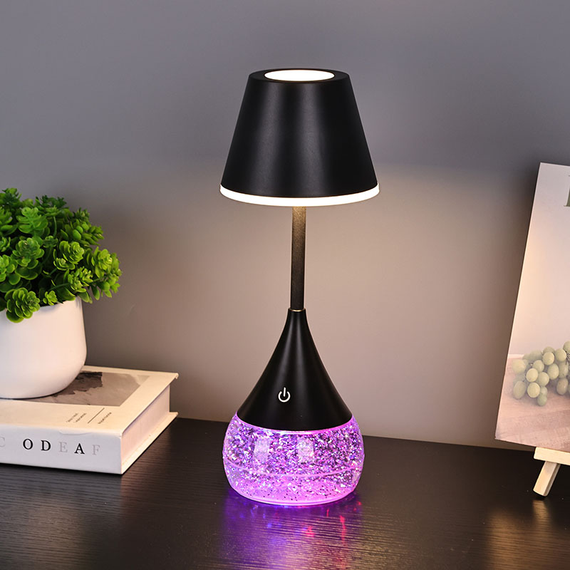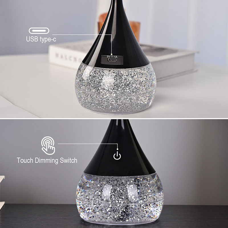 ベースの内部には、透明なボトルが不規則に動く液体を収容し、魅力的な視覚効果を生み出します。金属形状の液体ベースLEDデスクランプは、普通の液体ではありません。きらめきと渦巻きの魅惑的なダンスを作成するために特別に処方されています。液体が動くと、それは絶えず変化するパターンで光を反映し、進化し続ける視覚体験を生み出します。