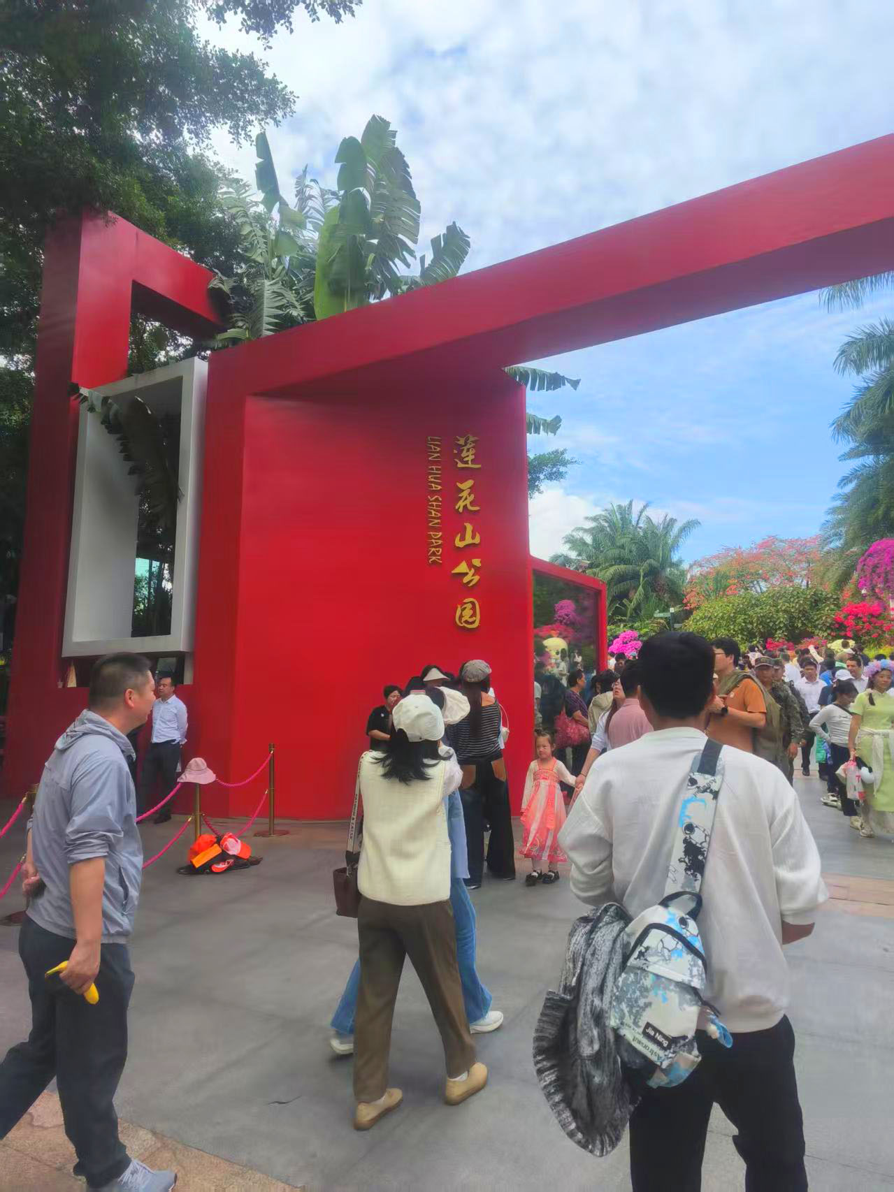 午後の旅程: 深センの蓮花山に登り、改革開放の最前線である深センへ車で向かい、そのまま蓮花山公園へ向かいます。ちょうど花まつりの時期に合わせて花が錦のように咲き誇り、見物客が行き交う。