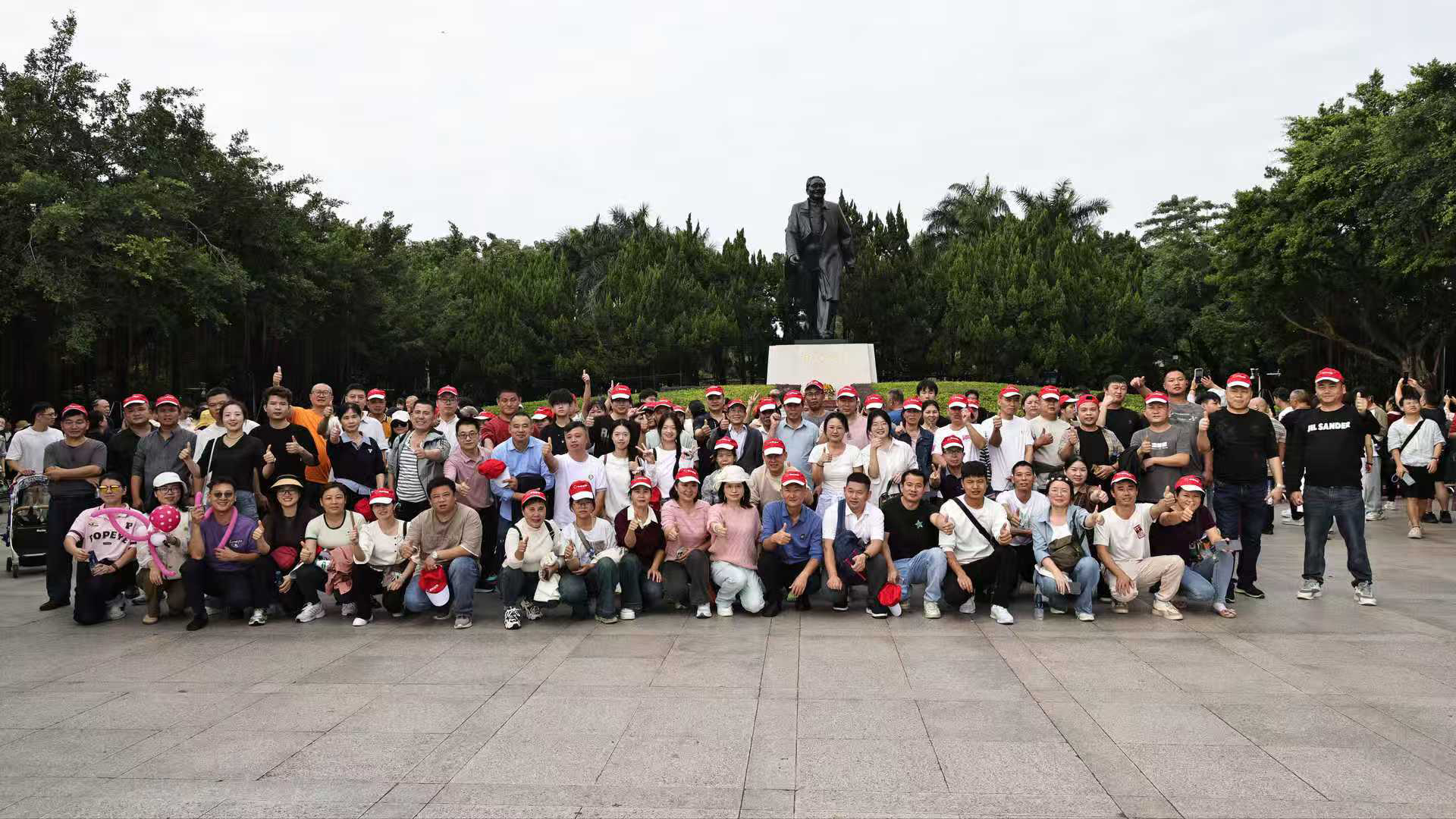 20分ほど登って全員が頂上に到着!鄧小平同志の銅像の前に立って、にぎやかな深センの街を眺めながら、私は感無量です。