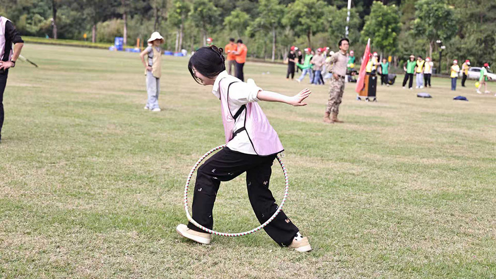 プロジェクト 4 ️: カニが逃げる 🦀 ゲームプレイ: フラフープを腰に振り、フープに触れずにリレーを完了します。罰: フープを落として 2 秒間停止します。所要時間: 25 分。シーン: 面白くて緊張して、会場全体が大笑いしました!