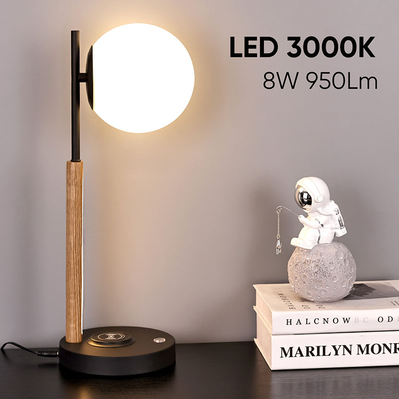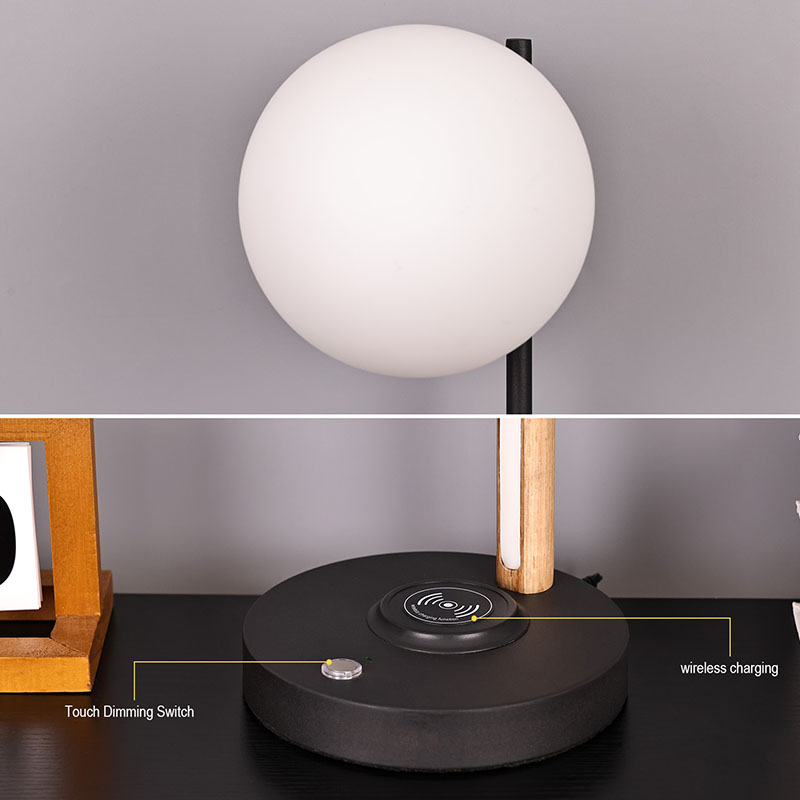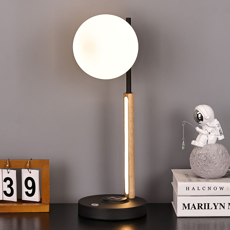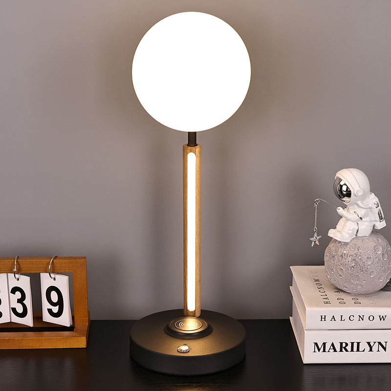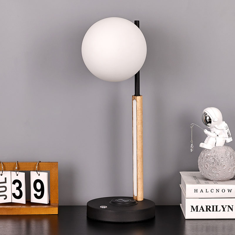 この球形のガラスのランプシェードと木製のランプ本体の小さなデスクランプは、実用的な照明ツールであるだけでなく、絶妙な装飾でもあります。リビングルームの隅に置くと、空間全体にモダンで芸術的な雰囲気を加えることができます。寝室のベッドサイドテーブルの横に置いて、穏やかな夜をお過ごしください。書斎の机の横に設置することもでき、十分で柔らかな作業用光を提供します。