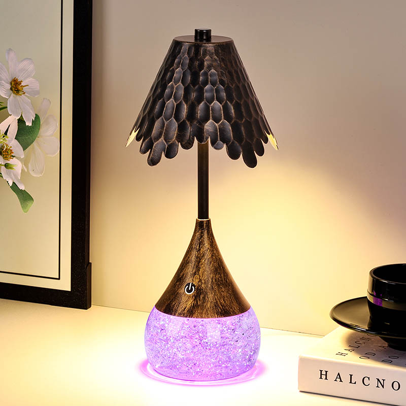 RETORシェードLEDデスクランプは、RGBグリッターベースを部屋の焦点に導き、注意を引き、会話を引き起こしました。それは単なるランプではありません。それは進化を続けている芸術作品です。