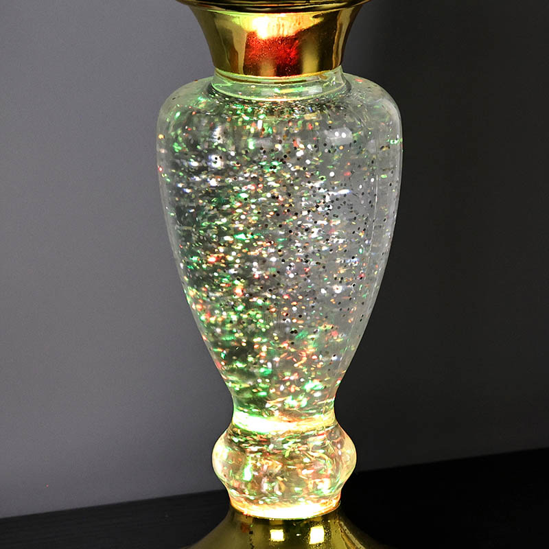 この装飾ライトの最大のハイライトは、内部の液体の流れの効果です。透明なガラス瓶の中には不思議な液体が満たされており、その液体の中には光り輝く無数のスパンコールが浮かんでいます。ランプを点灯するとガラス瓶の中で液体がゆっくりと流れ、幻想的な演出が得られます。星を散りばめたようなスパンコールが液体の中にふわりと浮かび、星空にいるかのような感覚を与えます。