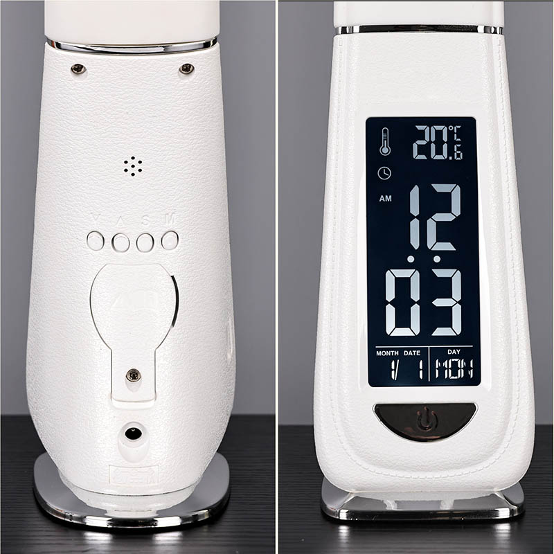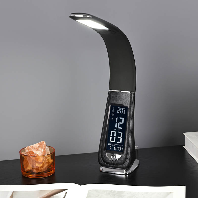 USBポート充電器LEDデスクランプは、フェザーのLED電球を備えたデスクランプを使用して、エネルギー効率と寿命を確保します。従来の白熱電球とは異なり、LED電球は消費電力を減らして熱を生成し、このランプを環境にやさしく、費用対効果の両方にします。また、スタイリッシュで実用的なLED目覚まし時計ディスプレイも装備されています。薄暗い照明条件であっても、デジタルディスプレイは明確で読みやすいです。現在の時刻、日付、さらには屋内温度と湿度レベルを示しています。