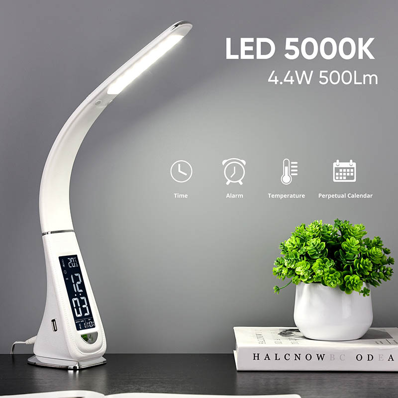 目覚まし時計機能は非常にユーザーフレンドリーです。希望のモーニング時間をボタンのタッチで設定すると、USBポート充電器LEDデスクランプ付きのデスクランプは、柔らかく、徐々に増加するブザーで眠りからやさしく眠ります。また、昼寝が必要な場合、または今後のイベントのリマインダーを設定したい場合は、USBポート充電器LEDデスクランプがフェザーのスヌーズとタイマー機能を備えています。