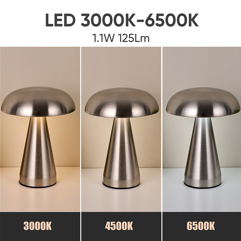 キノコシェード付き全体金属製 LED デスクランプは 3000K (暖かい光) 4500K (自然光) 6500K (白色光) 3 つの光色の変化を持っています。