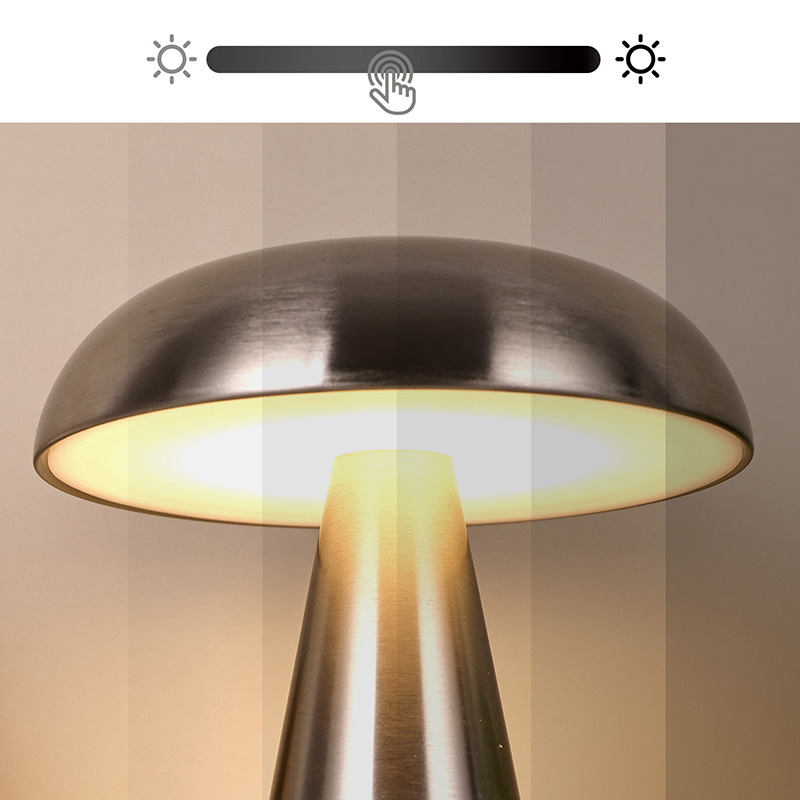 タッチ調光スイッチキノコシェード付きの全体金属製のLEDデスクランプは、すべて金属素材で作られており、非常に特別なデザインの外観を持っています。キノコの形を模しており、キノコの内側に強弱調整可能なライトが切り込まれています。マッシュルームシェード付きの全金属製LEDデスクランプは、会話のような環境の子供部屋に配置するのに適しています。キノコシェード付きの全金属製LEDデスクランプは、子供の世界をよく引き立て、部屋に暖かい照明を提供します。簡単に移動できるように、デスクランプには充電式バッテリーも内蔵されており、いつでもどこでも使用できます。